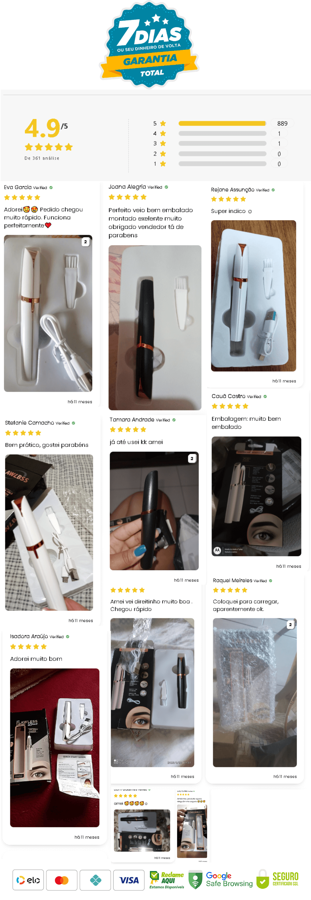 Devoluções Gratuitas Estorno de 100% do seu dinheiro 7 dias após o recebimento da mercadoria.
