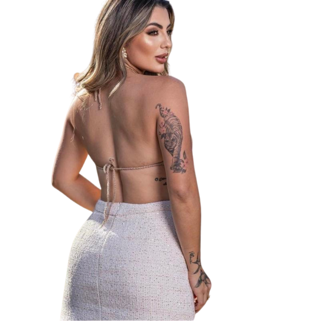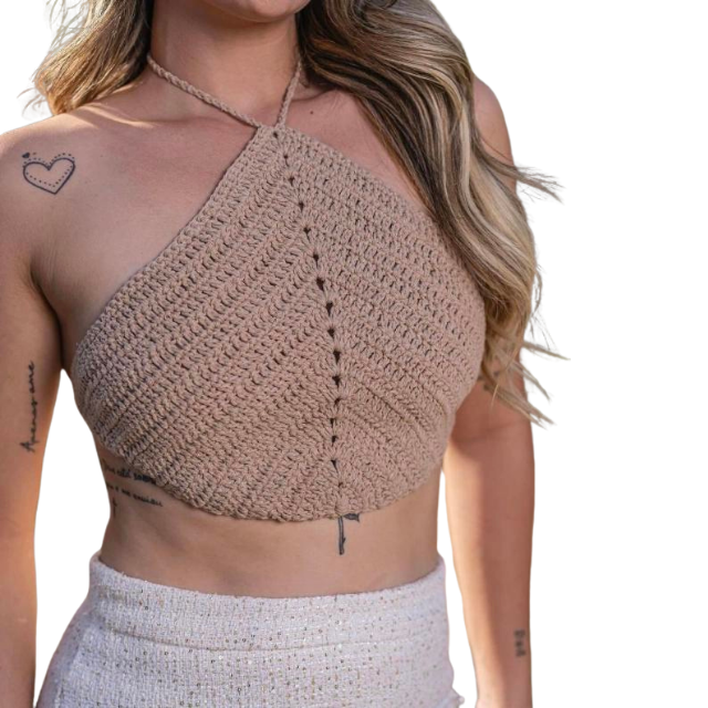 Top em crochê modelo frente única com amarração atrás. Modelo tendência,