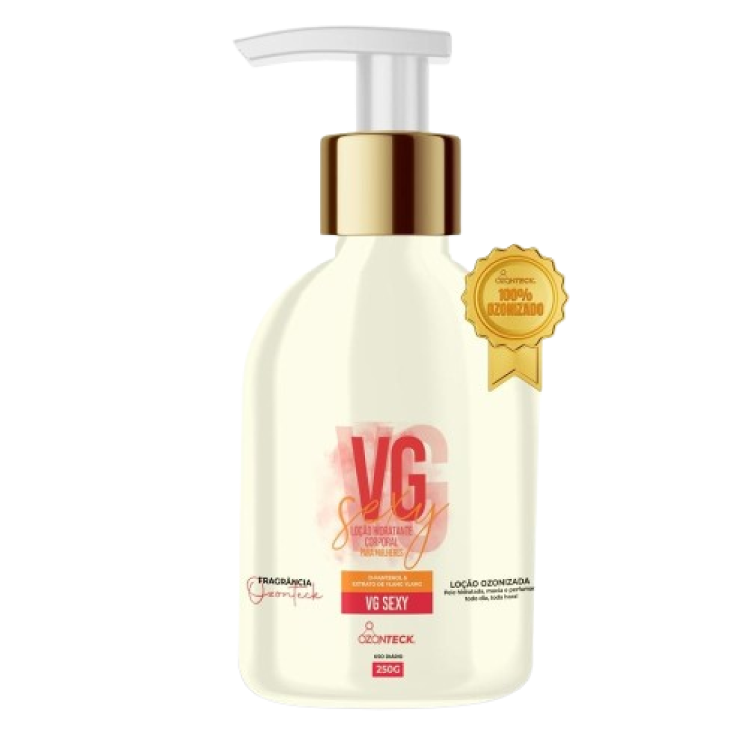 Como símbolo de sensualidade e intensidade, a loção corporal ozonizada VG Sexy da OzonTeck é um estímulo para a pele. E a união de hidratação profunda com um delicioso aroma floral intenso. Sua fórmula é enriquecida com ativos potencializados com o poder do ozônio que aumentam a produção de colágeno e previne a perda de elasticidade.