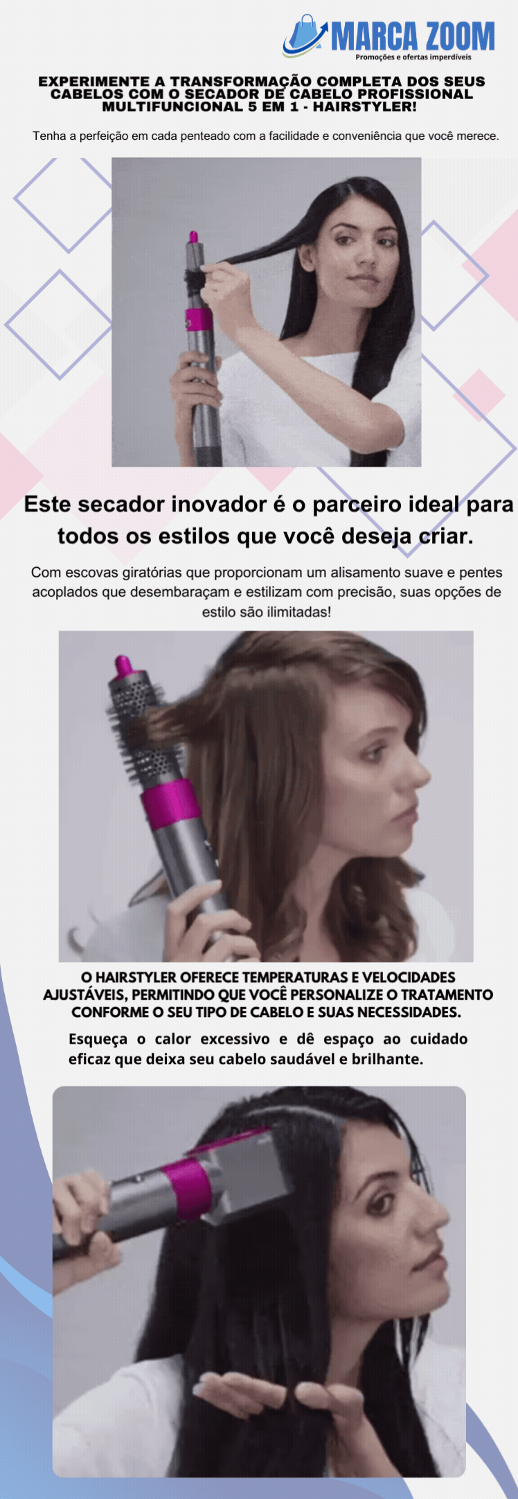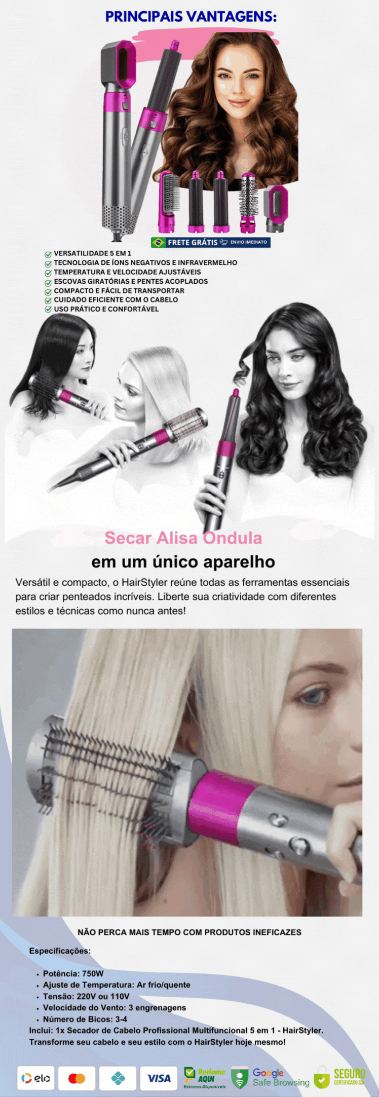 secador de cabelo profissional multifuncional 5 em 1 hairstyler!